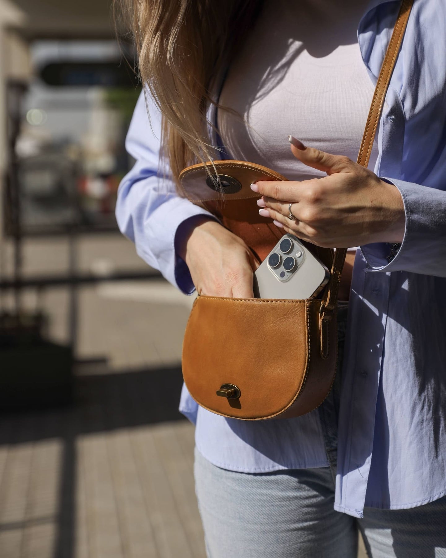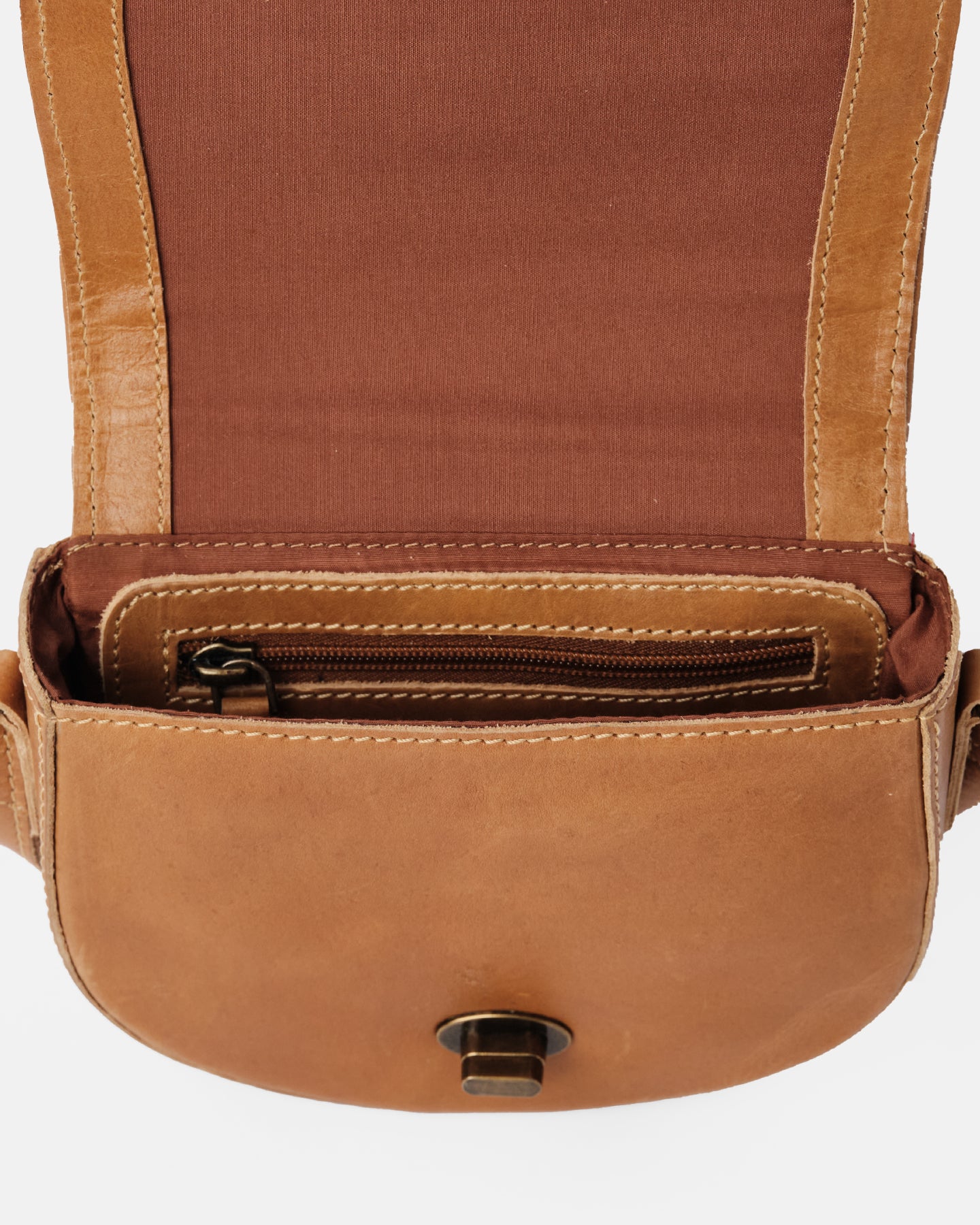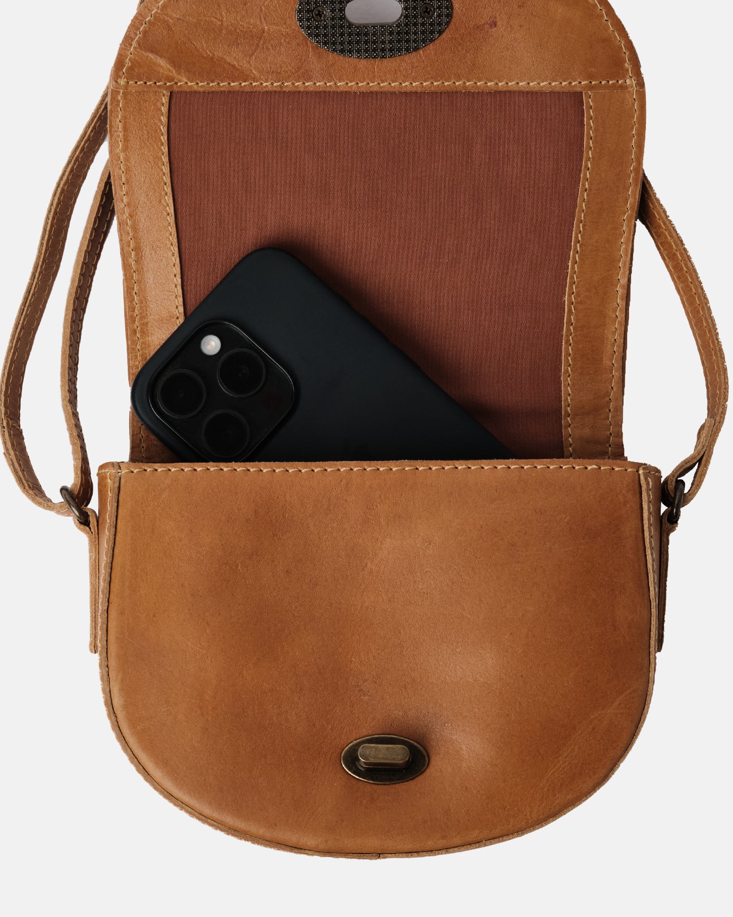 • Design: The distinct half-moon shape offers a modern twist on a classic design, providing plenty of room for essentials.